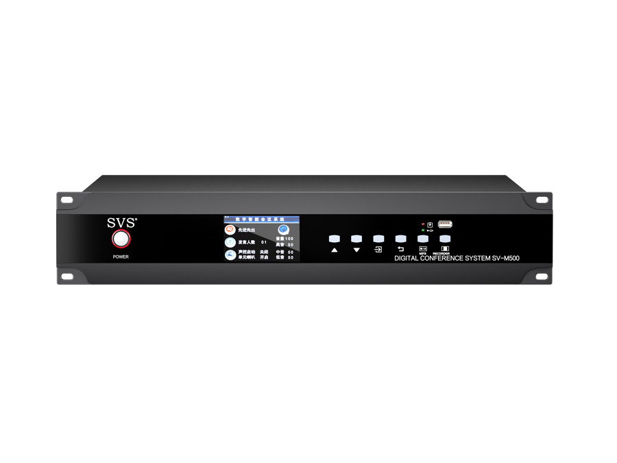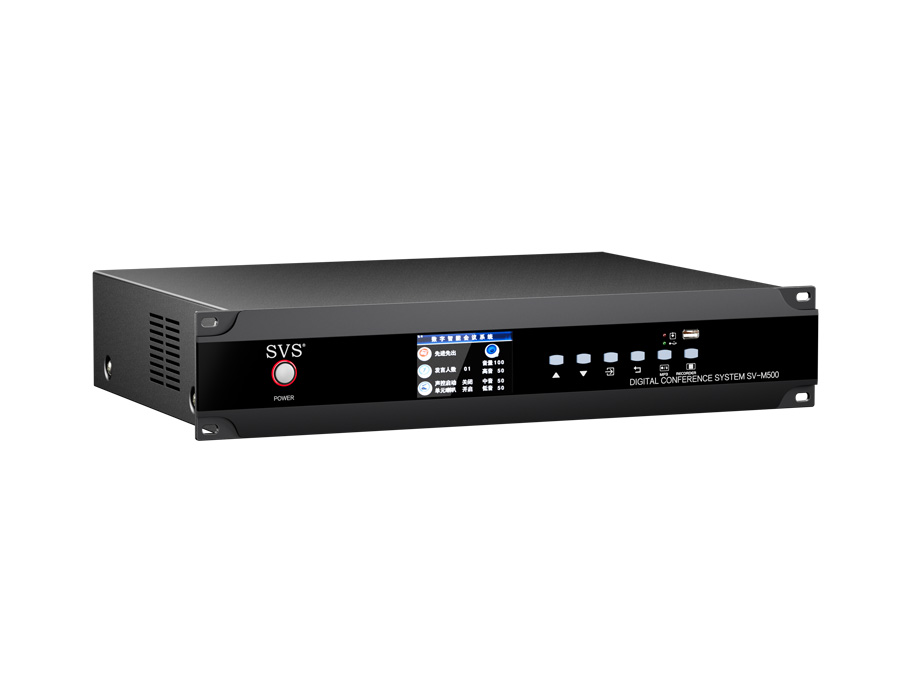 智能數字會議系統主機,集合會議討論和發言計時等功能為一體;采用高保真數字語音處理,平衡式音頻輸出;支持多種會議模式:智能限制、先進先出、智能申請、開放模式、限時發言、主席專用等模式;內置高、中、低音3段均衡調節和話筒總音量調節;支持聲控啟動話筒進行發言功能及門限級別可調節。