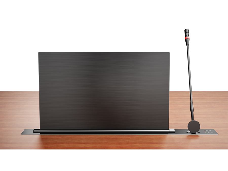 該產(chǎn)品為超薄液晶屏與話筒升降一體機(jī),采用結(jié)構(gòu)與屏體、話筒一體式設(shè)計(jì),整機(jī)大部分采用鋁合金材料,結(jié)合一次性模具成型的金屬外殼,美觀精致。產(chǎn)品動(dòng)力采用直角疊加式齒輪與齒條嚙合傳遞和同步輪同步帶傳動(dòng),結(jié)合直線軸承導(dǎo)向,完成精準(zhǔn)運(yùn)動(dòng)。產(chǎn)品標(biāo)配內(nèi)嵌式15.6英寸全高清液晶顯示屏,支持10點(diǎn)觸摸,即插即用。產(chǎn)品還搭配高級(jí)會(huì)議系統(tǒng)單元,并具有話筒開關(guān)與升降動(dòng)作的聯(lián)動(dòng)邏輯功能,確保運(yùn)動(dòng)的話筒處于關(guān)閉狀態(tài),避免對(duì)音箱產(chǎn)生噪音。產(chǎn)品支持單機(jī)或者會(huì)議系統(tǒng)組網(wǎng)使用。