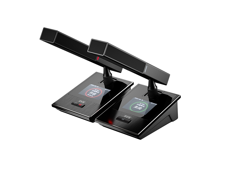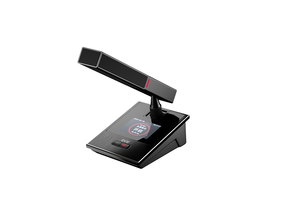 此款桌面式會議話筒分主席單元和代表單元,采用可拔插式超短咪桿,美觀精致,單元內置大振膜拾音頭;單元發言采用靜音開關,內置狀態指示燈,可自由控制和提示發言狀態;話筒內置彩色顯示屏,顯示單元類型、單元ID、發言狀態和發言正計時和倒計時等信息。